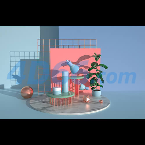 C4D化妆品护肤品产品渲染场景模型(不含材质贴图,白膜)24